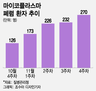 가천대 길병원 감염내과 엄중식 교수도 "코로나19 범유행 때 마스크를 착용하고 사회적 거리두기를 지키는 3년 동안 독감을 포함해 다른 호흡기 질환이 유행하지 않았다"며 "이 기간 면역력이 줄어든 사람이 바이러스에 감염돼 호흡기 점막이 손상되면 세균이 이를 침범해 폐렴을 일으킨다. 마이코플라스마 같은 경우는 어린이를 중심으로 크게 유행할 가능성이 있다"고 내다봤다.