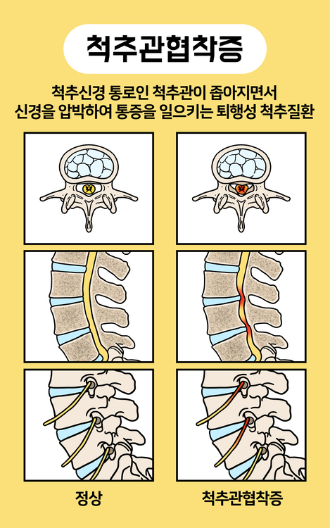 나이가 들면 흰머리가 생기고, 피부에 주름살이 생기듯이 척추에도 자연스럽게 변화가 생긴다. 허리신경을 둘러싸는 척추뼈와 인대, 척추관절 같은 구조물이 나이가 들면서 퇴행성 변화에 따라 크기가 커지거나 모양이 변하면 허리 신경이 지나가는 공간이 비좁아질 수 있다. 이에 따라 여러 가지 증상을 일으키는 것을 척추관협착증이라고 한다.