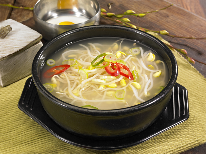 콩나물·미나리는 좋은 '천연 숙취해소제'다. 이들 식품 속 아스파테이트라는 성분이 알코올 분해 효소의 활동을 촉진한다. 술 마신 다음 날 콩나물을 먹으면 숙취가 덜하다는 연구 결과도 있다. 특히 콩나물국이나 북엇국을 따끈하게 해서 먹으면 숙취를 풀고 해장하는 데 실제로 도움 된다. 유 교수는 "술을 마시면 위장관 운동이 일시적으로 많이 떨어지는데, 이때 찬물을 마시거나 찬 음식을 먹으면 위장 운동이 더 떨어져 구역질·구토 같은 숙취 증상이 심해질 수 있다"고 설명했다. 단, 아무리 따뜻하더라도 마라탕처럼 자극적이면서 맵고 짠 국물은 피해야 한다. 맵고 짠 음식은 위를 강하게 자극할뿐더러 이미 술을 마셔 탈수된 상태에서 땀을 뻘뻘 흘려 탈수를 더 부추기기 때문이다. 해장을 위해선 따뜻하면서도 맑은 국물을 선택해보자.