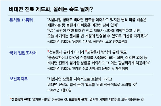 포괄등재 규제로 바뀌면 비대면 진료의 허용 기준이 넓어져 받기가 쉬워진다. 이는 정부의 비대면 진료 확대 기조와 일치한다.