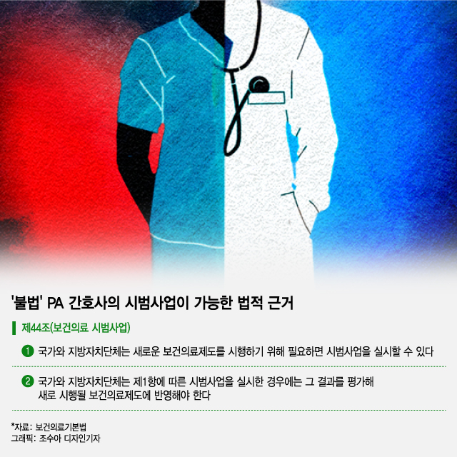 이번 시범사업은 보건의료기본법 제44조(보건의료 시범사업)에 근거한다. 이 조항에 따르면 △국가와 지방자치단체는 새로운 보건의료제도를 시행하기 위해 필요하면 시범사업을 실시할 수 있고 △시범사업을 실시하면 그 결과를 평가해 새로 시행될 보건의료 제도에 반영해야 한다. 결국 이번 시범사업이 PA 합법화의 실마리가 될 가능성이 크다는 대목이다.