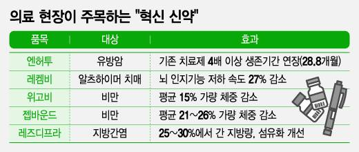 약이 없던 질병을 치료할 수 있게 개발한 치료제가 '혁신 신약'이다. '세상에 없던 약'이자 새 치료법을 제시한다는 점에서 혁신 신약은 일반인은 물론 의사에게도 환영받는 반가운 존재다. 최근 세계 의료계가 주목하는 혁신 신약의 '대표 주자'는 단연 비만치료제다. '삭센다'에 이어 '위고비', '젭바운드' 등 효과적인 비만치료제가 잇따라 개발되며 의료 현장은 물론 글로벌 제약시장의 지각 변동을 일으키고 있다. 특히 국내에서 시판되는 비만치료제 삭센다는 '없어서 못 팔' 정도로 큰 인기다. 한 대학병원 비만클리닉 교수는 "물량이 없는데 의사들도 너나없이 써보려고 해 병원에서 비만 치료하는 교수에게만 처방 권한을 열어야 할 정도로 인기"라고 분위기를 전했다.