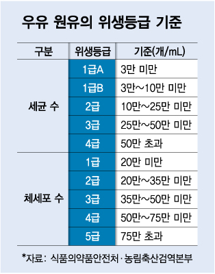 농림축산검역본부 동식물위생연구부 세균질병과가 지난해 진행한 원유 검사 결과에 따르면 최근 3년간 세균 수 '1A' 등급은 2021년 93.95%에서 2023년 94.07%로 0.05%포인트 증가했다. 또 체세포 수 '1등급' 비율은 2021년 66.39%에서 2023년 69.13%로 3.23%P 증가했다. 이는 국산 우유 가운데 최상급 우유 비중이 높아졌다는 의미다. 원유 1㎖당 세균 수 3만 개 미만(1A 등급), 체세포 수 20만 개 미만(1등급)일 때 최상급 우유로 친다. 세계에서 가장 뛰어난 낙농 선진국으로 알려진 덴마크와 똑같은 수준이다.