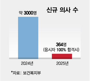정부가 의사 수를 늘리기 위해 의대증원책을 내놨지만, 되레 의사 수가 줄어드는 기현상으로 나타날수도 있단 우려가 나온다. 내년 신입 의대생은 지금(3058명)보다 49%(1509명 증원) 느는데, 신규 의사 수(364명)는 예년 수준(3000여명)보다 88% 줄어들 것으로 예고돼서다. 의대정원 증가폭(49%)보다 의사 배출 감소폭(88%)이 더 커, 국내 의사 수는 오히려 줄어들수도 있단 평가다.