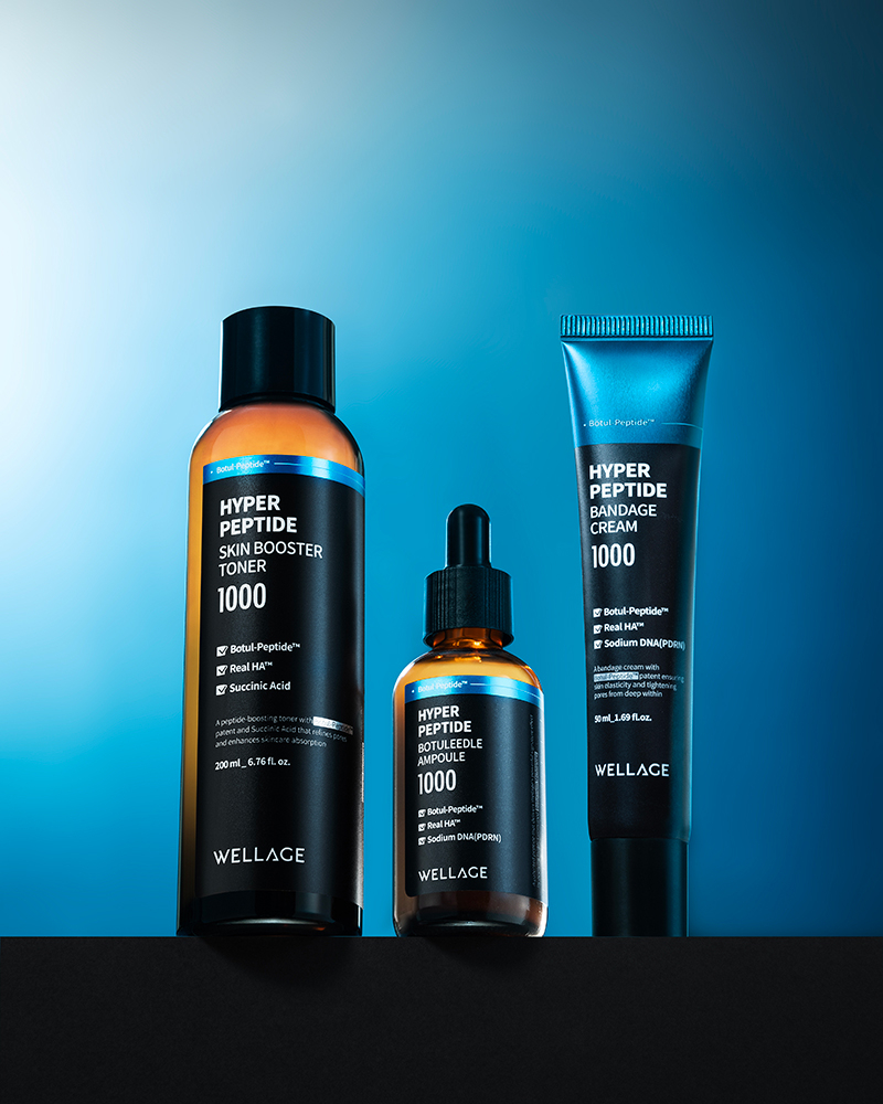 웰라쥬에 따르면 해당 제품 라인은 휴젤 독자 특허 성분 '보툴 펩타이드'를 주요 성분으로 담고 있어 복합적인 모공 관리와 피부 탄력 개선에 효과적이다. 신제품은 △하이퍼 펩타이드 스킨 부스터 토너 △하이퍼 펩타이드 보툴리들 앰플 △하이퍼 펩타이드 밴디지 크림까지 3종으로 구성됐다.