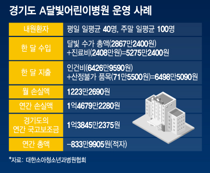 달빛어린이병원이 소아응급실 역할까지 감당해야 할 경우 의사·간호사·원무·의료기사 등 근무 인력, 응급환아에 대한 치료재, 검사·처치 장비·시설을 추가로 갖춰야 해 병원으로서는 '나갈 돈'이 많아진다. 하지만 정작 정부에선 지급해주기로 약속한 국고보조금을 줄였거나 아예 주지 않고 있다는 게 달빛어린이병원장들의 하소연이다.