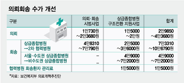 상급종합병원과 인근의 2차 병원과의 진료 협진도 정부가 지원한다. 한 사람이 진찰하는 것보다 진료 협력에 대한 노력이 더 많이 보상받을 수 있도록 '전문적 의뢰·회송 수가'를 인상한다는 방침이다. 환자에 대한 2차 병원으로의 회송이 보다 원활하게 진행되도록 회송 환자를 '보내는' 의료기관뿐 아니라 회송 환자를 '받는' 진료협력병원에 대해서도 진료협력지원금을 지원하기로 했다. 또 '수도권' 상급종합병원에서 '비수도권' 상급종합병원으로 환자를 회송할 때도 정부가 지원하는 '상종(상급종합병원) 간 회송에 대한 지원책'도 신설한다.