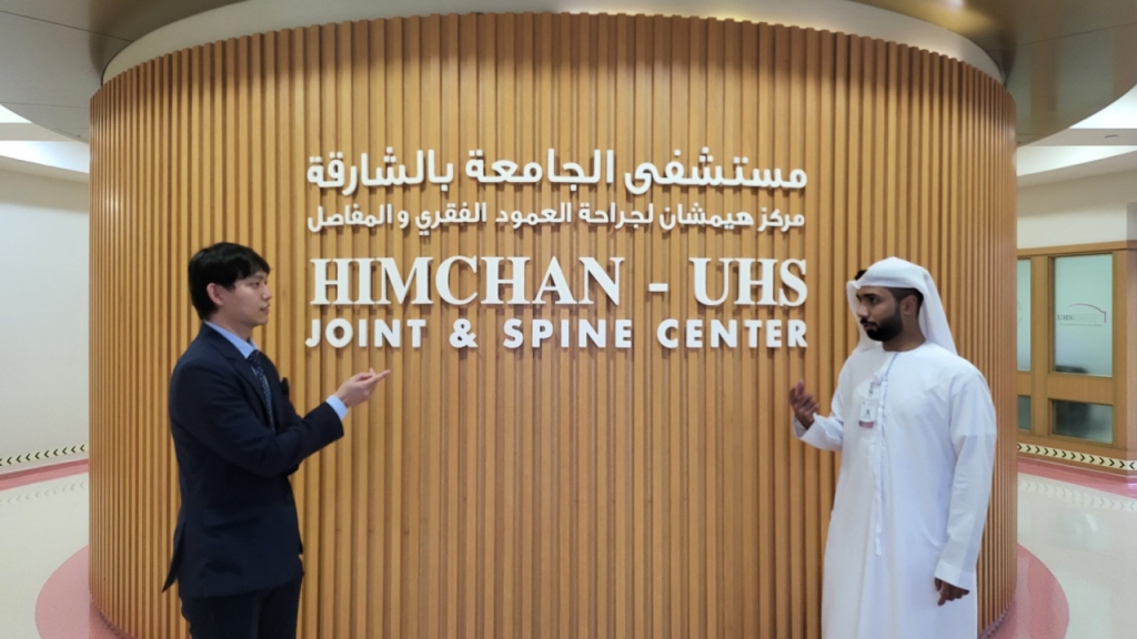 2층 센터 입구에는 영문으로 '힘찬'(HIMCHAN)이 샤르자대학병원(UHS) 앞에 내걸려 있다. 아랍인들이 자국에서 한글로 지은 병원 이름을 부르고 또 찾는다니 자못 감격스러웠다. 6주년 기념식에서 만난 샤르자병원 관계자는 "세계 최고 수준의 의료 서비스"라며 "앞으로도 함께하자"고 힘찬센터를 추켜세웠다.