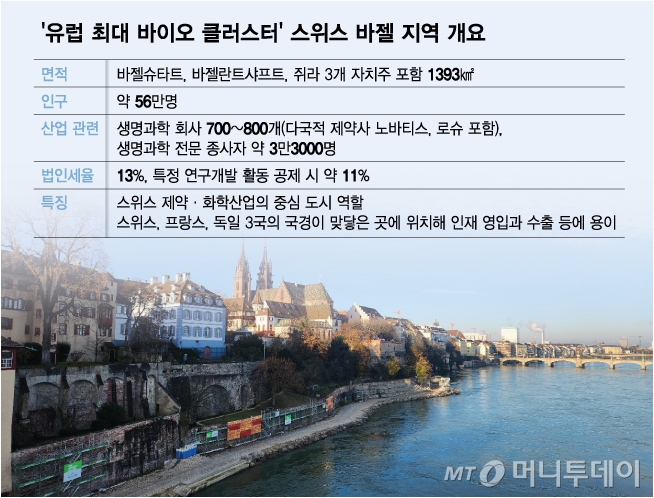 이어 "유럽 최대 제약 시장인 독일, 프랑스와 맞닿은 지리적 위치로 수출 등이 용이하고 이탈리아도 가까워 유럽 내 인재들을 쉽게 고용할 수 있다"며 "1000개가 넘는 우수한 연구그룹과, 생명과학 기업들, 대학, 노바티스와 로슈 등 대형 제약회사, 론자와 바켐 등 세계적 위탁개발생산(CDMO) 회사가 우수한 생태계를 이루고, 수많은 신생기업(스타트업) 등이 생명과학 분야를 풍부하게 한다"고 덧붙였다.