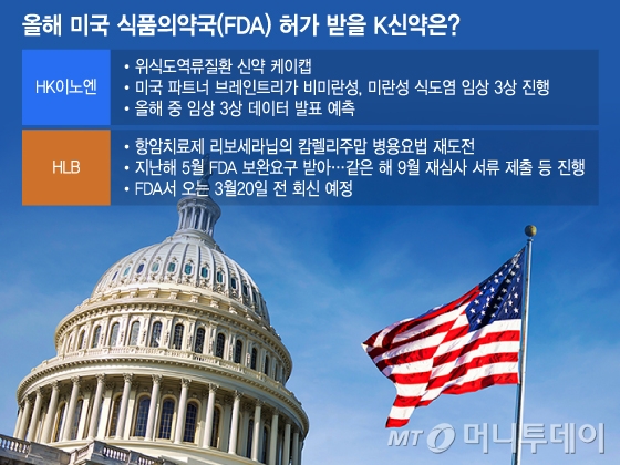 지난해 국산 항암제 최초로 미국 식품의약국(FDA) 허가를 받은 유한양행(93,600원 ▲1,500 +1.63%)의 폐암 치료제 '렉라자' 이후 한국 신약의 미국 진출에 대한 기대감이 커지고 있다. 제약·바이오업계에서는 현대인의 속쓰림을 해결하는 HK이노엔(48,600원 ▲100 +0.21%)의 케이캡, 암을 굶겨 죽이는 효과가 뛰어난 HLB(62,700원 ▲4,400 +7.55%)의 리보세라닙을 유력한 후보로 보고 있다.