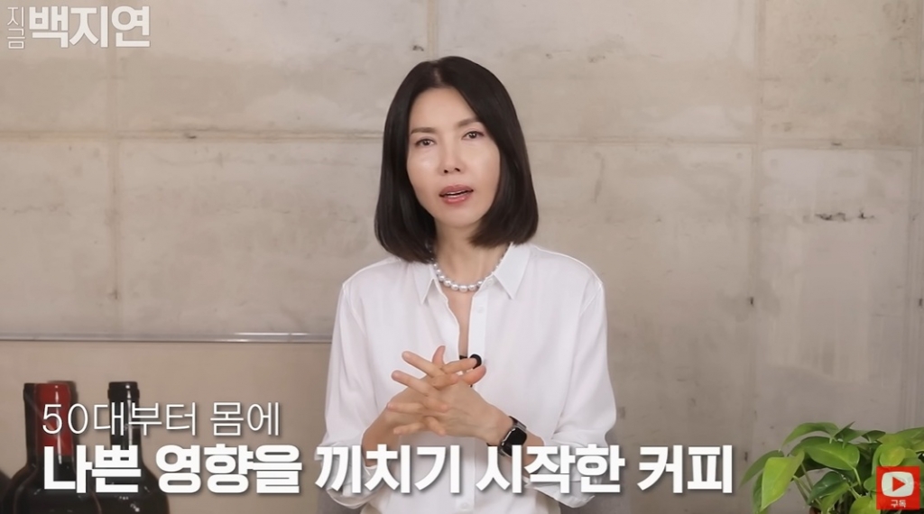영상에서 백지연은 "제가 커피를 정말 좋아한다"며 "카페에서 사용하는 (전문) 기계도 직접 구매했을 정도"라고 운을 뗐다. 이어 "그런데 50대부터 (커피가) 몸에 나쁜 영향을 끼치기 시작했다"고 토로했다.