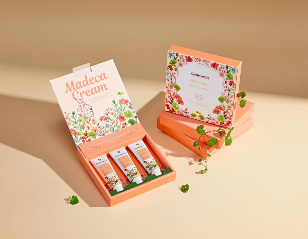 상품에는 '마데카 크림 파워 부스팅 포뮬러'(50ml) 3개가 들어있다. 마데카 크림 파워 부스팅 포뮬러는 센텔리안24의 베스트셀러 '마데카 크림'에서 항산화 기능과 흡수력을 더한 제품이다. 병풀 유래 핵심성분 센텔라아시아티카 정량추출물(TECA)에 알카닌 콤플렉스 등을 함유했다. 피부 구성 성분인 히알루론산, 콜라겐, 엘라스틴을 결합한 '엘라스틱 3코어 콤플렉스'가 피부 탄력 개선에 도움을 준다. 각종 유효성분을 안정화시켜 피부 전달력을 높이는 일명 '방패 캡슐' 기술을 적용해 피부 친화적인 성분을 더욱 효과적으로 전달한다.