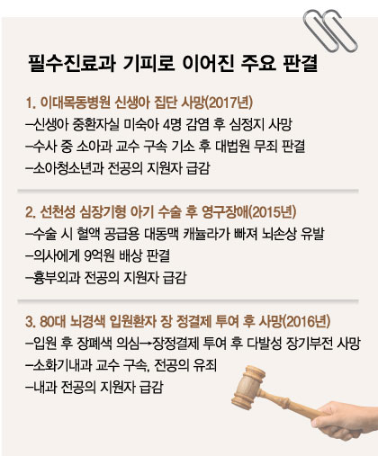 응급내시경 후 환자가 사망한 사례에 대한 의료사고 소송 2심에서 금고형을 선고받아 면허취소 위기에 놓인 의사에 대해 탄원 움직임이 일고 있는 가운데, 동료 의사들이 "해당 의사에 대한 유죄 판결은 필수의료 죽이기로 이어질 것"이라며 울분을 토하고 있다. 의료사고에 대한 의사 책임을 피할 수 있는 진료과로의 지원율이 급증하는 풍선효과로도 이어지면서 필수의료 기피현상이 가속화하고 있단 지적이다.