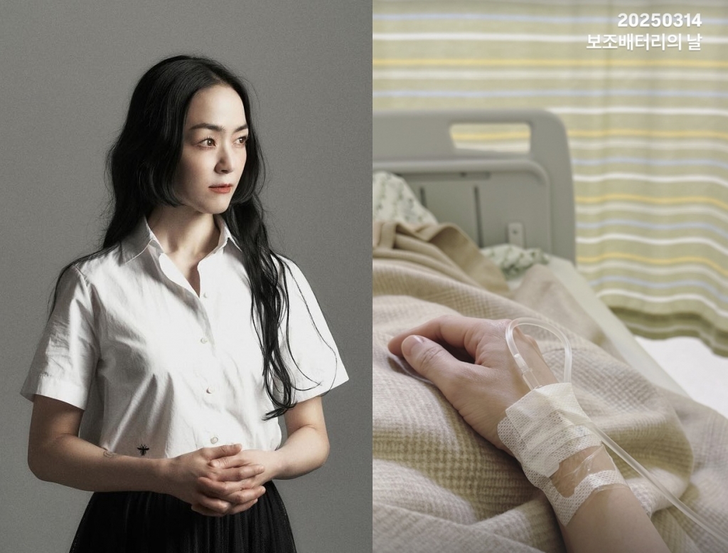 김윤아는 지난 17일 인스타그램에 병원에 치료받는 사진과 함께 "20250314 보조배터리의 날"이라는 짧은 글을 남겼다. 사진 속 김윤아는 한쪽 손에 링거 주사를 꽂고 침대에 누워 있다.
