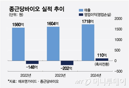 종근당바이오는 2001년 종근당(88,400원 ▲300 +0.34%)의 발효·정제 원료 사업 부문을 분할해 설립됐다. 기존엔 항생제·면역억제제 등 원료의약품과 프로바이오틱스 원료·완제 생산이 핵심 매출원으로 꼽혔지만, 신성장 동력인 보툴리눔 톡신 사업을 최근 확대 중이다. 종근당바이오는 지난해 매출 1718억원, 영업이익 110억원을 기록하며 연간 흑자전환에 성공한 바 있다. 톡신 사업이 성공적으로 자리 잡을 경우 매출 확대가 기대된다.