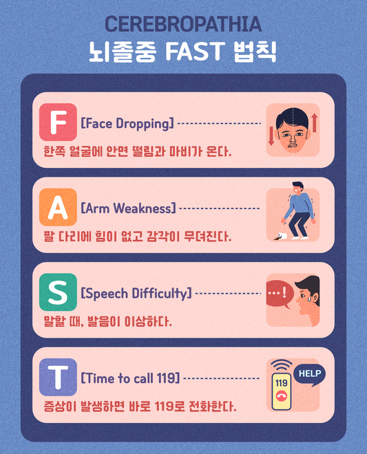 △팔·다리 또는 얼굴 한쪽 힘이 빠지거나 저림(갑작스러운 반신 마비) △말이 어눌해지거나 단어를 떠올리기 어려움(실어증) △한쪽 또는 양쪽 눈이 흐려지거나 이중으로 보임(시야 장애) △서 있거나 걸을 때 균형을 잃고 어지러움(보행 장애) △갑작스러운 기억력 저하·혼동(인지 장애) 등이 대표적인 증상이다.