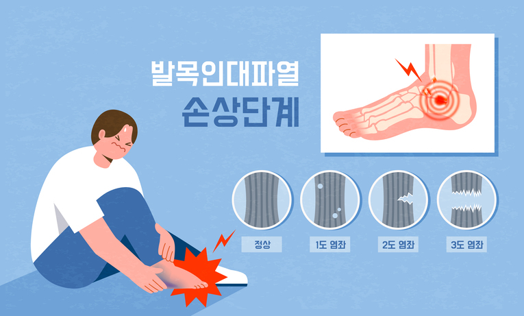 발목염좌는 손상 정도에 따라 1도부터 3도까지 나뉘며, 이에 따라 치료법도 달라진다.