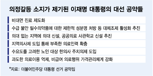 하지만 '의대증원'은 여전한 뇌관이다. 이 후보가 공약으로 내놓은 '지역의사제'와 '지역의대·공공의료사관학교 신설' 등 의사 정원 확대 공약에 대해선 의사들의 반감이 크다. 의협은 "지역 및 공공의료 분야의 인력 수급 문제를 해결할 수 있는 근본적인 방안이 아니"라는 입장을 내비치기도 했다. 의대증원을 반대해온 의사들로서는 사실상 '의사 수 확대'를 밀어붙이려는 정책에 반기를 들 것이란 분석에 힘이 실린다.