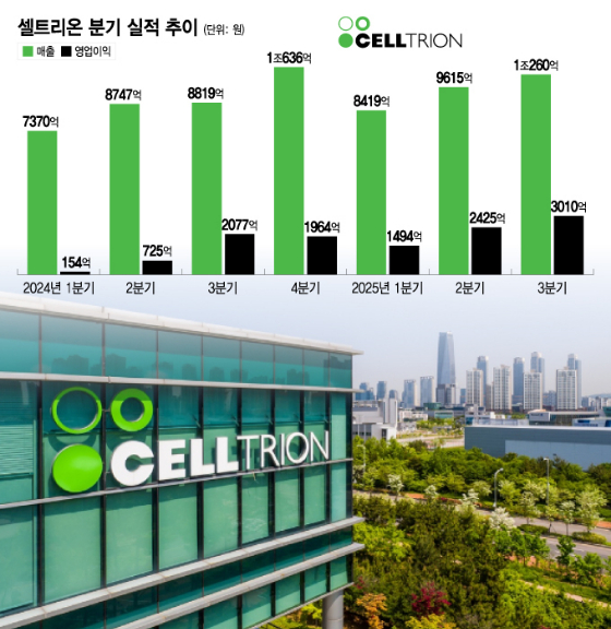 셀트리온은 지난 21일 3분기 잠정실적 공시를 통해 연결 기준 매출액 1조260억원, 영업이익 3010억원을 기록했다고 발표했다. 3분기 기준 1조원을 넘어선 역대 최대 매출과 분기 영업이익 최초 3000억원 돌파로 29.3%의 영업이익률을 기록했다.