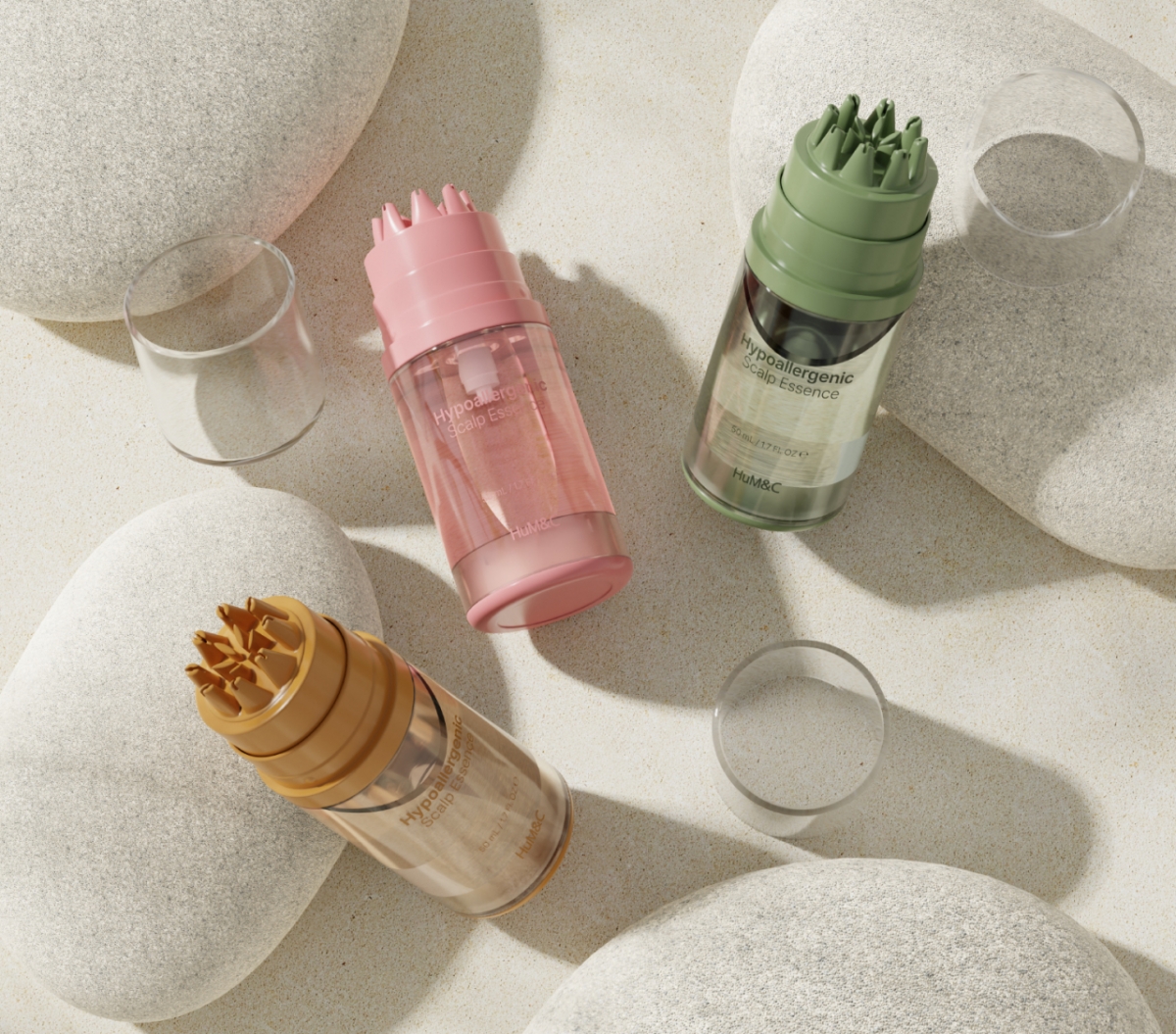 휴엠앤씨는 이를 개선하기 위해 고무의 탄성과 플라스틱의 성질을 동시에 갖춘 신소재인 엘라스토머를 활용하고, 제품을 도포하는 동시에 두피 마사지가 가능한 구조로 개선했다. 이를 통해 두피 자극 효과와 유효 성분의 흡수율을 높였다.