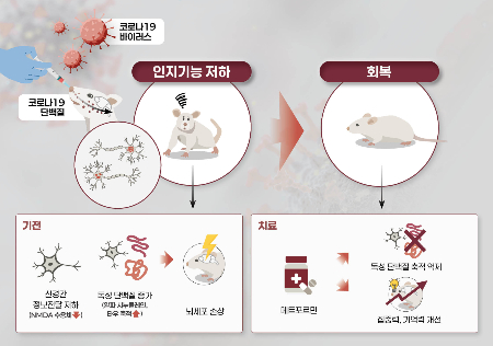 그 결과, 실험 쥐는 실제 코로나19 바이러스 감염 후 미로를 잘 찾지 못하고 낯선 공간에서 불안 행동이 증가하는 등 학습력·기억력이 동시에 떨어지는 인지 저하 증상을 보였다.