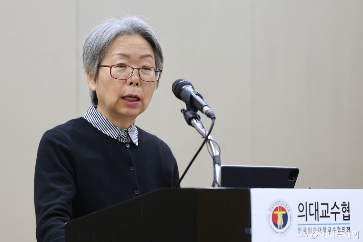 ![[서울=뉴시스] 권창회 기자 = 조윤정 전국의과대학교수협의회 회장이 13일 서울 성북구 고려대학교에서 열린 기자간담회에서 발언하고 있다. 2026.02.13. kch0523@newsis.com /사진=](https://thumb.mt.co.kr/cdn-cgi/image/f=avif/21/2026/02/2026021314503458095_1.jpg)