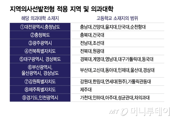 앞서 복지부는 지난달 20일 '지역의사의 양성 및 지원 등에 관한 법률'(지역의사양성법)의 시행령과 시행규칙 제정안을 입법예고하면서 지역의사제 선발전형 적용 지역과 의과대학을 공개했다.