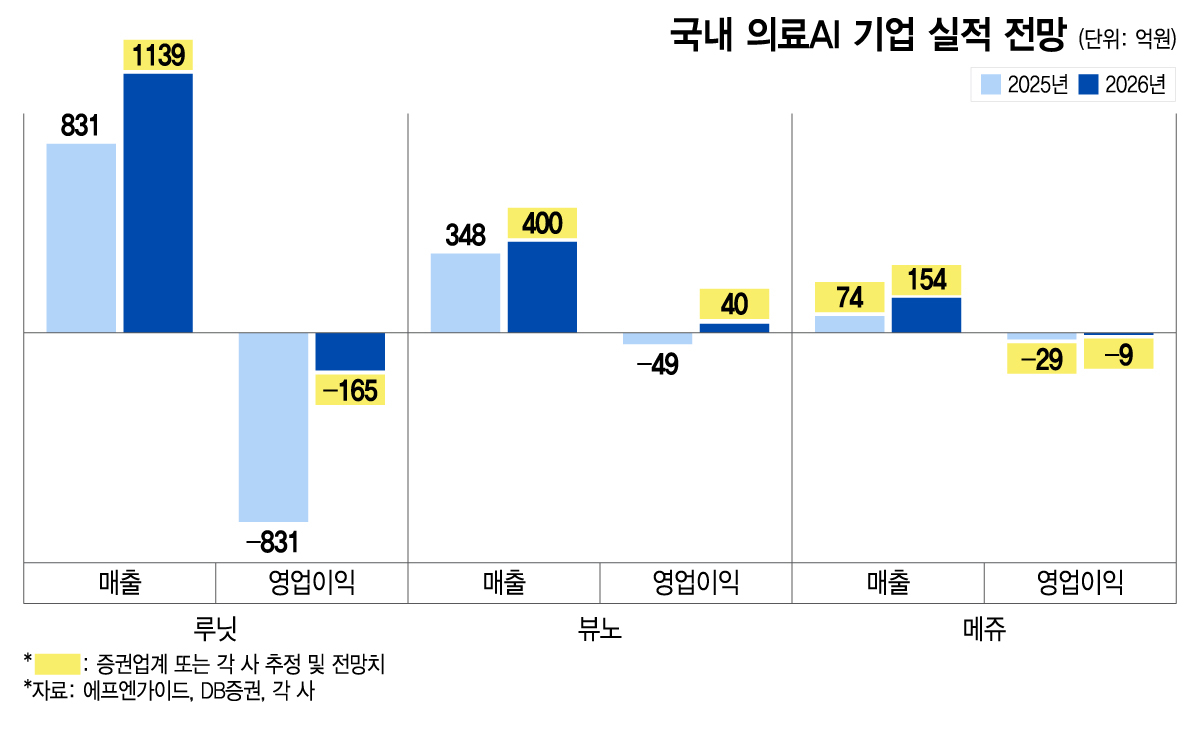 21일 업계에 따르면 루닛과 뷰노, 메쥬 등 주요 의료AI 기업들은 올해 그동안 지속된 적자 구조를 벗어나거나 손실폭을 크게 개선할 것으로 전망된다. 각 사별 기업가치 제고는 물론, 씨어스테크놀로지가 불씨를 키운 의료AI 산업 경쟁력도 재평가될 기회가 될 전망이다.