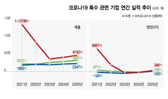이들 기업들은 코로나19 팬데믹-엔데믹을 거치며 실적 또는 기업가치 급변을 겪었다. 씨젠은 팬데믹에 따른 수요 증가에 진단시약 실적이 크게 증가했다가 엔데믹 국면에 급감했고, 신풍제약은 치료제 기대감에 폭등했던 기업가치가 개발 실패로 크게 꺾였다. 엔데믹 후유증을 겪은 3사는 체질개선을 위한 노력을 이어왔다.