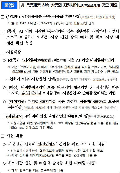 정은영 복지부 보건산업정책국장은 "그간 유망한 디지털의료기기 기업들이 인허가 이후에도 시장진입 과정에서 겪어온 어려움을 해소하고, 우수한 AI 기반 디지털의료기기가 의료 현장에 신속히 확산될 수 있도록 적극 지원하겠다"고 말했다.