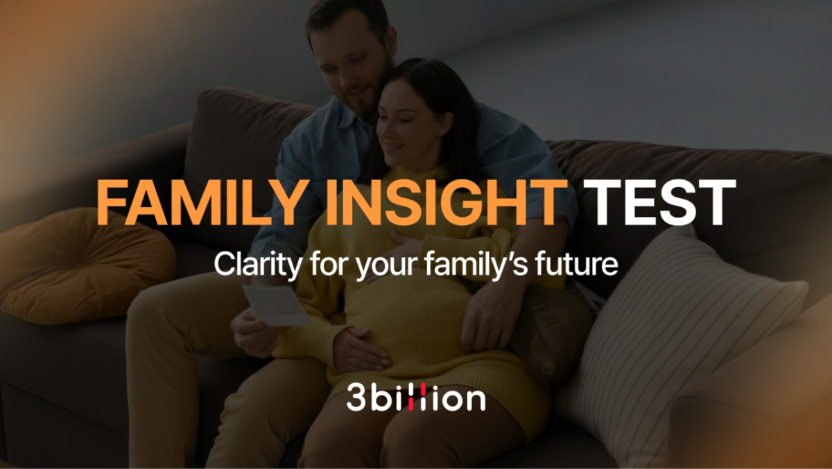 쓰리빌리언이 그동안 원인 미상의 증상을 가진 희귀질환 환자를 대상으로 유전적 원인을 규명해왔다. 이번 서비스는 자체 AI(인공지능) 유전변이 해석 기술을 확장해 가족 단위의 유전적 위험을 미리 확인할 수 있도록 한 진단 검사다.