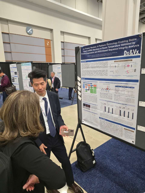 DXVX는 이번 학회 메인행사 첫 번째 날에 포스터 발표를 진행했다. 발표에서는 회사가 보유한 상온 초장기 보관 핵산 안정화 플랫폼을 적용한 mRNA 제형의 안정성을 NGS 기반 정밀 분석법으로 검증한 차별화된 결과를 소개했다.