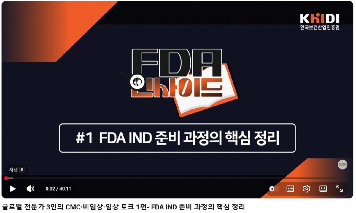 이번에 처음 시도한 토론형 콘텐츠에서는 강의형 동영상에 참여한 CMC, 비임상, 임상 전문가 3인이 미국 식품의약국 임상시험계획 승인신청을 준비할 때 발생하는 이슈에 대해 논의한다.