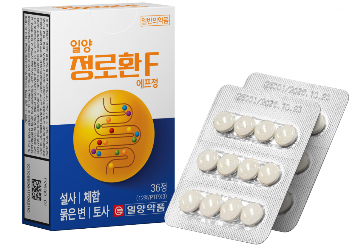 일양 정로환에프정은 설사 증상 완화와 함께 체함, 묽은 변 등으로 적용 범위를 확대한 생약복합제다. 황백엑스산, 황련 가루, 감초가루, 진피건조엑스와 구아야콜 등 총 5종의 원료를 함유해 효능과 향을 거부감 없이 유지했다.