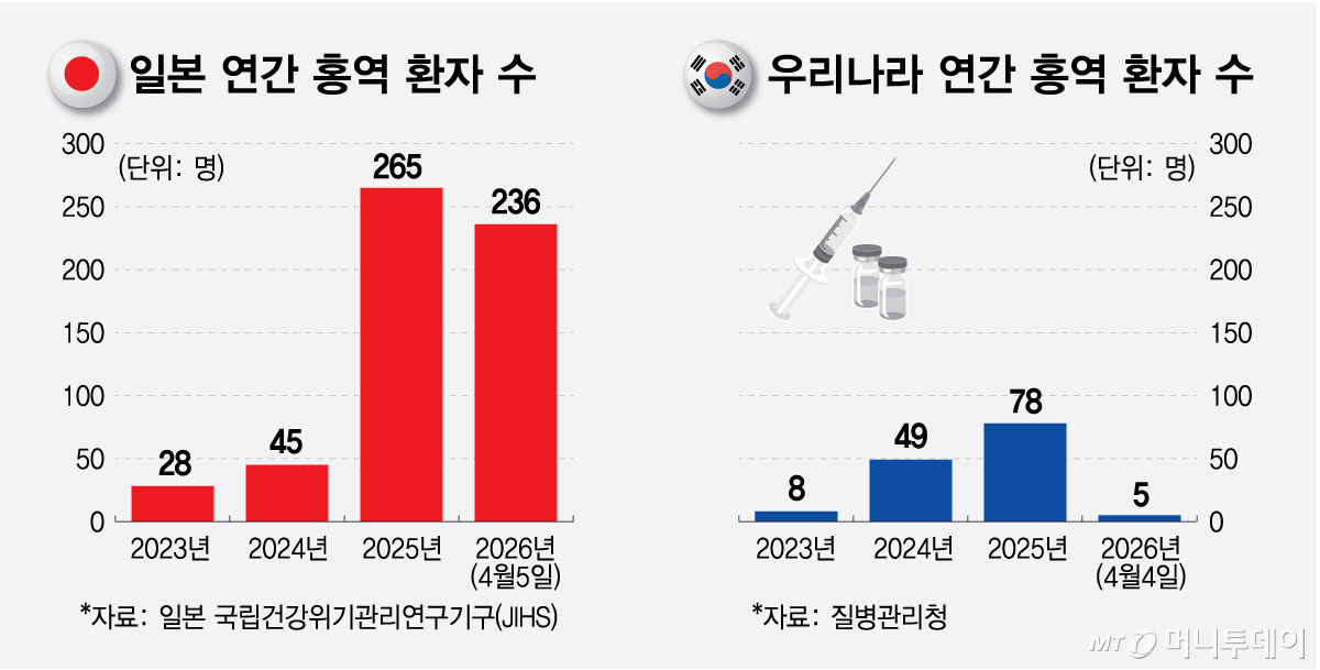 질병청 관계자는 "일본은 해외 유입 외 자국 내 발생이 63%를 차지하고 있어 지역사회 전파가 본격화한 것으로 파악하고 있다"며 "지역별로 도쿄·오사카 등 대도시의 발생 보고가 많은 상황"이라고 설명했다.