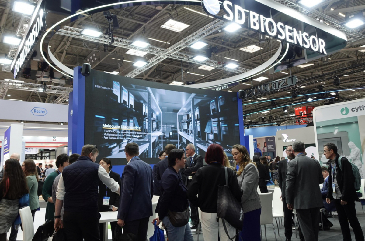 에스디바이오센서는 전시가 진행되는 4일간 대형 부스를 운영하고 지난 20일엔 단독 심포지엄을 개최했다. 전시 부스에선 지난해 11월 처음 시장에 공개된 화학발광 면역분석 플랫폼 '스탠다드 아이'(STANDARD i)를 비롯해 유럽의 진단 환경에 적합한 현장분자진단 플랫폼 '스탠다드 엠텐'(STANDARD M10, 이하 M10), 유럽 내 높은 시장 점유율을 보유한 형광면역진단 브랜드 '스탠다드 에프'(STANDARD F)를 중심으로 주요 장비를 선보였다.