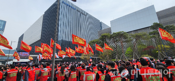 집회 분위기와 달리 현재 노사간 대립은 첨예한 상황이다. 노사는 지난해 12월23일부터 지난달 13일까지 총 13차례에 걸쳐 진행된 임단협 교섭에서 합의에 이르지 못했다. 이후 진행된 노동위원회 조정 절차 역시 결렬된 상태다. 14% 수준의 임금 인상률을 비롯해 1인당 3000만원의 격려금 지급, 영업이익의 20%를 성과급으로 배분 등을 담은 노조 요구안과 임금인상률 6.2%를 제시한 사측 간 입장차가 좁혀지지 않고 있기 때문이다.