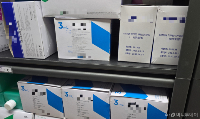 지난 21일 서울 중구의 한 안과의원 의료 소모품 창고 모습. 3cc(㎖) 용량 주사기가 2주분밖에 남지 않았다. /사진=홍효진 기자