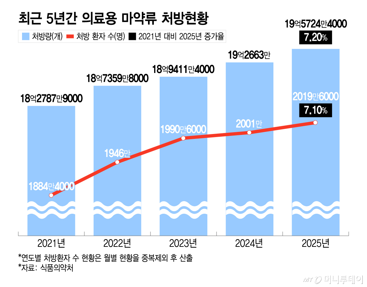 오유경 처장은 "최근 식욕억제제 처방량은 최근 감소 추세를 보이고 있으나, 오남용 및 중독우려가 높은 의료용 마약류인만큼 의사와 환자 모두 적절한 처방과 사용이 필요하다"고 강조했다. 식욕억제제 처방량은 2021년 126만명에서 2023년 114만명, 지난해 107만명으로 줄었다.