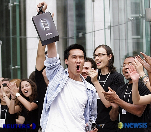 뉴욕 5번가의 한 애플상점에서 29일(현지시간) 출시된 아이폰을 첫번째로 구입한 사람 중의 한 사람이 상점을 떠나자 애플 상점 직원들이 축하해주고 있다. 독자들의 PICK! 5년 전 사라진 걸그룹 리더 충격 폭로…"빚쟁이라며 인터넷방송 시켜" '40억 건물주' 이해인 "대출만 32억…이자 계산하다 못 자" 토로 친구 아내와 바람난 남편...월 300만원 받고 방 잡아준 친구 배우 정은우, 돌연 사망 비보…하루 전엔 SNS에 장국영 사진