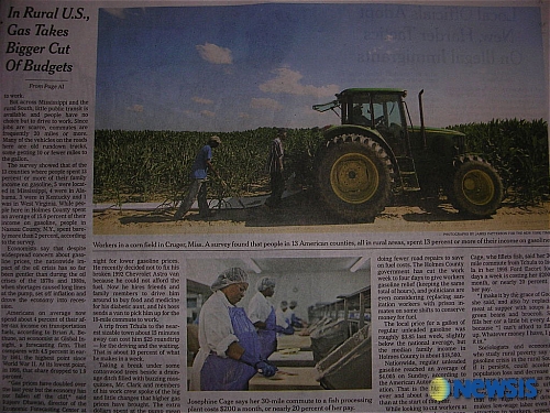 뉴욕타임스는 9일(현지시간) A섹션 1면과 15면에 걸쳐 상대적으로 수입이 적으면서 대중교통시설이 빈약한 이들 지역민들의 어려움을 조명했다.