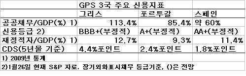 3국의 GDP 대비 재정적자 규모는 9~12%에 이른다. 작지는 않다. 2009년중 GDP대비 그리스, 포르투갈, 스페인 정부부채 비율은 각각 113% 85% 60% 수준이다. 그리스는 높은 편이라 할 수 있지만 스페인은 그리 파괴적인 것으로 보기 힘들다. 그리고 그 채무가 모두 대외채무도 아닐 것이다.