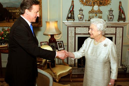 영국 엘리자베스 여왕은 11일(현지시간) 오후 고든 브라운 총리가 사퇴한 후 캐머런 당수를 불러 총리에 임명하고 내각 구성을 요청했다.