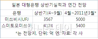 은행들은 상반기 호실적을 냈음에도 보수적인 연간 전망을 냈다. 6대 은행의 2010 회계연도 하반기 순익은 상반기보다 감소, 전년비 60% 늘어난 1조8100억엔을 기록할 것으로 예상된다. 이 가운데 MUFG는 5000억엔, SMFG는 5400억엔의 순익을 각각 전망했다.