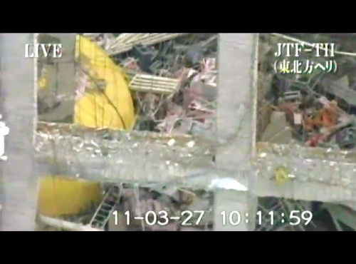 3호기에서는 수소폭발으로 크게 파괴된 원자로 건물 상부로부터 수증기가 강하게 피어올랐다. 핵연료를 이동시키기 위한 크레인이 천정부분에서 보이지 않았다. 연료 풀과 연료도 보이지 않았다. 크레인의 일부가 풀 위로 떨어져 연료를 파손시켰을 가능성도 있다.