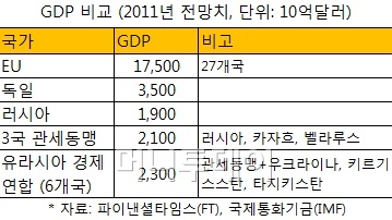 유라시아 대륙의 옛 소련 구성국들의 경제를 통합, 러시아가 주도하는 새로운 국가공동체를 세우겠다는 움직임이 마침내 수면 위로 드러났다. 현재 러시아, 카자흐스탄, 벨라루스 3국이 체결한 관세동맹에 우크라이나 등 옛 소련의 형제국가를 동참시켜 유럽연합(EU) 수준으로 경제통합을 격상시킨다는 구상이다.