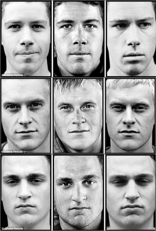 22일 영국 데일리메일에 따르면 네덜란드의 사진작가 클레어 페리시는 아들의 친구가 아프가니스탄으로 파병을 가게 된 것에 충격을 받고 전쟁에 투입되는 해병 20명의 사진을 찍기로 결심다.