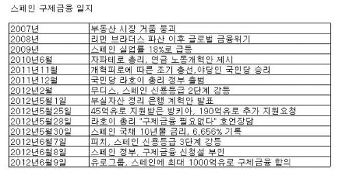 이에 따라 스페인은 유럽 재정위기가 불거진 이후 구제금융을 받게 된 4번째 유로존(유로화 사용 17개국) 국가이자, 경제규모로는 구제금융을 받은 가장 큰 나라가 되었다.