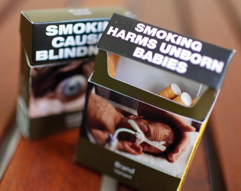 지난 주말부터 호주에서 판매되는 모든 종류의 담뱃갑에는 흡연 때문에 발이 썩어가고 입안에 암 덩어리가 자리잡은 '끔직한 사진' 실리기 시작했다. 사진은 또 흡연에 따른 실명, 폐기종, 뱃속 태아에 대한 악영향 등을 적나라하게 묘사하고 있다.