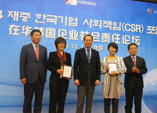 중국부녀연합회 산하의 중국아동소년기금회, 베이징서부양광농촌발전기금회 등 두 기관은 한국기업이 중국에서 벌이는 CSR 활동을 대폭적으로 지원했고 이에 사의를 표하기 위해 이번 포럼에서 공식 발표 이전에 ‘재중 한국기업 CSR협상회의’회장(중국한국상회 회장 겸임)의 명의로 이 두 기관에 감사패를 수여하였다.